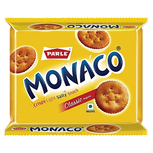 Parle Monaco – the classic, buttery‑crunchy crackers that are a tea‑time staple across India. Made from wheat flour, vegetable oil and a pinch of spices, they’re light, salty and melt‑in‑your‑mouth, perfect for snacking solo or pairing with dips.